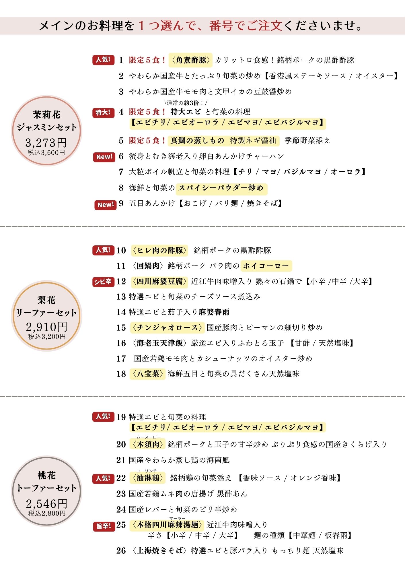 セット、コースメニュー